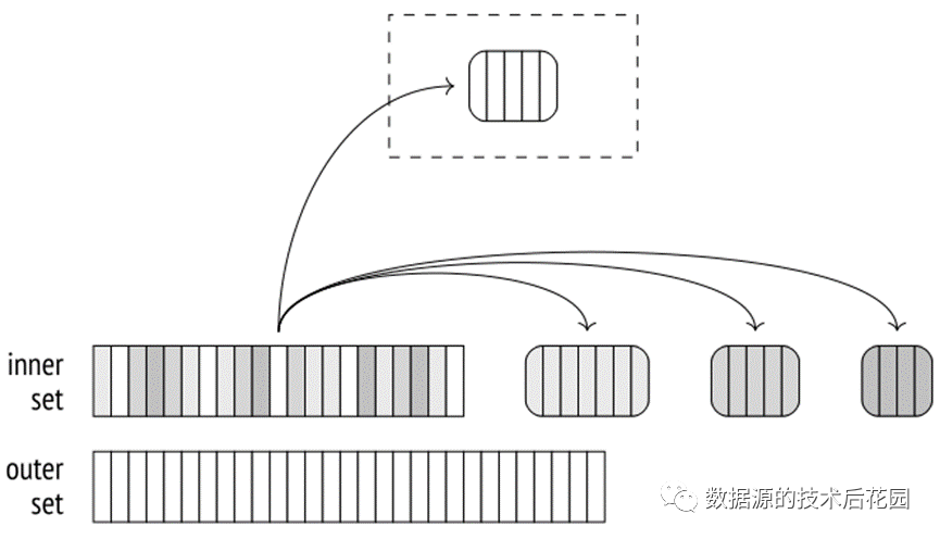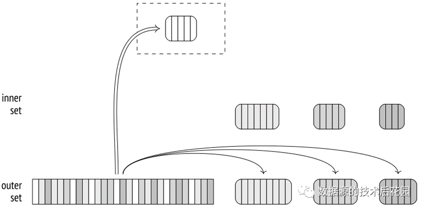 对于保存在磁盘上的每批数据,都要重复这两个阶段:内部数据集的行从临时文件转移到哈希表;然后从另一个临时文件中读取与同一批处理相关的外部集的行,并与此哈希表进行匹配。一旦处理,临时文件将被删除。