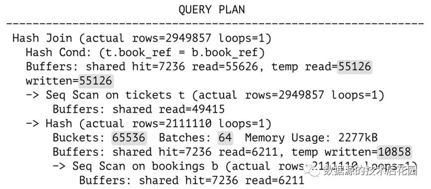 table,Buckets代表分了多少个内存桶(这里是),Batches表示在一个批次中执行。关于桶的数量:所选择的桶数应该保证当哈希表完全填满数据时每个桶平均只保存一行,更高的密度会增加哈希冲突率使搜索效率降低,而不太紧凑的哈希表会占用太多内存。