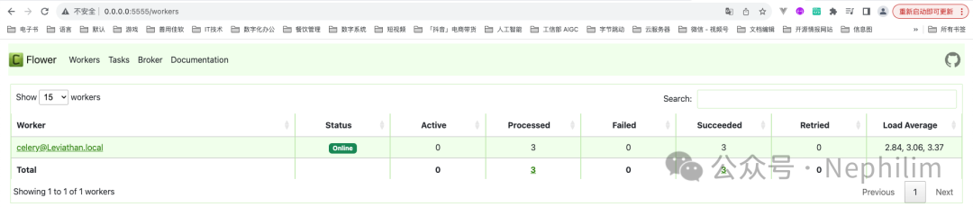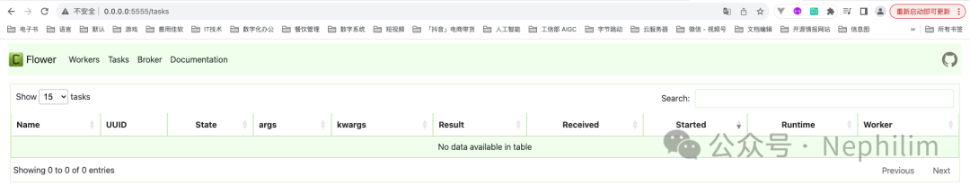 在触发Celery的Task执行前,先看看Flower的状态:
