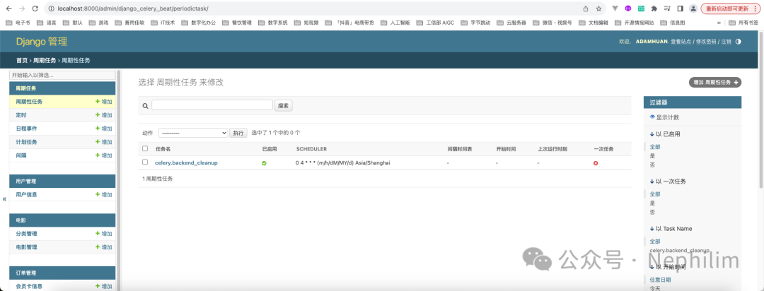 可以看到新增的「周期任务」的相关表的后台管理页面。