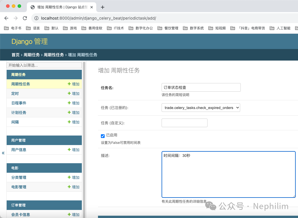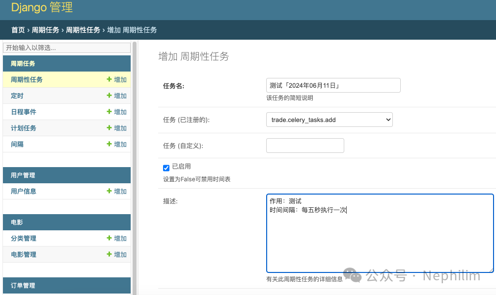 然后,在Django的Admin页面中配置定时任务: