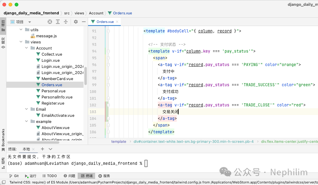 (venv) (base) adamhuan@Leviathan django_daily_media % pwd/Users/adamhuan/PycharmProjects/django_daily_media(venv) (base) adamhuan@Leviathan django_daily_media %(venv) (base) adamhuan@Leviathan django_daily_media % python manage.py makemigrationsNo changes detected(venv) (base) adamhuan@Leviathan django_daily_media %(venv) (base) adamhuan@Leviathan django_daily_media % python manage.py migrateSystem check identified some issues:WARNINGS:trade.Card.card_name: (mysql.W003) MySQL may not allow unique CharFields to have a max_length > 255.HINT: See: https://docs.djangoproject.com/en/5.0/ref/databases/#mysql-character-fieldsOperations to perform:Apply all migrations: account, admin, auth, contenttypes, django_celery_beat, movie, sessions, tradeRunning migrations:Applying django_celery_beat.0001_initial... OKApplying django_celery_beat.0002_auto_20161118_0346... OKApplying django_celery_beat.0003_auto_20161209_0049... OKApplying django_celery_beat.0004_auto_20170221_0000... OKApplying django_celery_beat.0005_add_solarschedule_events_choices... OKApplying django_celery_beat.0006_auto_20180322_0932... OKApplying django_celery_beat.0007_auto_20180521_0826... OKApplying django_celery_beat.0008_auto_20180914_1922... OKApplying django_celery_beat.0006_auto_20180210_1226... OKApplying django_celery_beat.0006_periodictask_priority... OKApplying django_celery_beat.0009_periodictask_headers... OKApplying django_celery_beat.0010_auto_20190429_0326... OKApplying django_celery_beat.0011_auto_20190508_0153... OKApplying django_celery_beat.0012_periodictask_expire_seconds... OKApplying django_celery_beat.0013_auto_20200609_0727... OKApplying django_celery_beat.0014_remove_clockedschedule_enabled... OKApplying django_celery_beat.0015_edit_solarschedule_events_choices... OKApplying django_celery_beat.0016_alter_crontabschedule_timezone... OKApplying django_celery_beat.0017_alter_crontabschedule_month_of_year... OKApplying django_celery_beat.0018_improve_crontab_helptext... OK(venv) (base) adamhuan@Leviathan django_daily_media %
