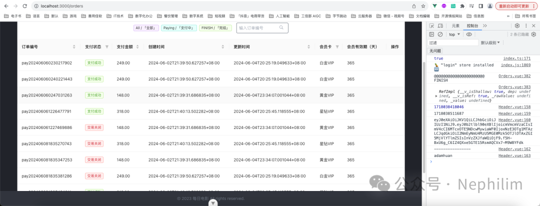 <template><div id="container" class="text-white text-sm bg-primary-300 min-h-screen pb-4"><Header/><div class="flex items-center justify-center"><div class="w-full px-2" style="max-width:1440px;"><div id="main" class="bg-primary-300 p-6 text-black"><!-- 订单 --><div class="rounded bg-white mx-4 my-4 py-6 "><div class="px-6"><h1 class="text-lg font-semibold">我的订单</h1></div></div><div id="orders_all" class="rounded bg-white mx-4 my-4 py-6"><!-- 头部标签组 与 输入框 --><a-row class="flex items-center justify-center"><a-space><!-- 标签组 --><div><a-tag color="purple" @click="TagClick('all')"><a href="/orders">All 「全部」</a><!-- All 「全部」 --></a-tag><a-tag color="cyan" @click="TagClick('paying')"><a href="/orders/?pay_status=paying">Paying 「支付中」</a><!-- Paying 「支付中」 --></a-tag><a-tag color="green" @click="TagClick('finish')"><a href="/orders/?pay_status=trade_success">FINISH 「完结」</a><!-- FINISH 「完结」 --></a-tag></div><!--输入框 --><div class="relative shrink"><form><input v-model.trim="order_sn" type="text" name="order_sn" class="outline-0h-9roundedborderborder-gray-600placeholder-gray-400w-64px-2py-1max-w-[180px]" placeholder="输入订单编号" ><div class="absolutetop-0right-0flexitems-centerh-full"><div class=" rounded text-xs text-gray-400 px-2 mr-2"><button v-on:click.prevent="searchOrders"><svg xmlns="http://www.w3.org/2000/svg" class="h-4 w-4" fill="none" viewBox="0 0 24 24" stroke="currentColor" stroke-width="2"><path stroke-linecap="round" stroke-linejoin="round" d="M21 21l-6-6m2-5a7 7 0 11-14 0 7 7 0 0114 0z" ></svg></button></div></div></form></div></a-space></a-row><!-- 空行 --><br/><!-- 表格组件 --><a-table:columns="columns":data-source="data"><template #bodyCell="{ column, record }"><!-- 支付状态 --><template v-if="column.key === 'pay_status'"><span><a-tag v-if="record.pay_status === 'PAYING'" color="orange">支付中</a-tag><a-tag v-if="record.pay_status === 'TRADE_SUCCESS'" color="green">支付成功</a-tag><a-tag v-if="record.pay_status === 'TRADE_CLOSE'" color="red">交易关闭</a-tag></span></template><!-- 操作 --><template v-if="column.key === 'action'"><!-- 未完成的订单 继续支付 --><a-button v-if="record.pay_status === 'PAYING'" @click="pay(record)">支付</a-button></template></template></a-table></div></div></div></div><Footer/></div></template><script setup lang="ts">// ================================= 引入包// 项目:头与底部import Header from "@/components/layout/Header.vue"import Footer from "@/components/layout/Footer.vue"// 消息通知import showMessage from "@/utils/message.js";// 处理表格数据与渲染import axios from 'axios'import {useRequest} from 'vue-request'import {watch} from 'vue';// 路由或地址相关import {useRoute} from "vue-router";const route = useRoute()import router from "@/router/index.ts";import {ref} from "vue";// ================================= 获取数据const getOrders = () => {// 最终返回的变量let data_return = ''// 地址let url = '/api/order/'// 根据 URL 地址的状态进行动态设定const page:any = Number(route.query.page)const pay_status:any = route.query.pay_statusconst order_sn:any = route.query.order_snconst params = new URLSearchParams()if (page) {params.append('page', page)}if (pay_status) {params.append('pay_status', pay_status)}if (order_sn) {params.append('order_sn', order_sn)}url = url + '?' + params.toString()// AXIOS 请求API接口const orders = axios.get(url).then(response => {// 最终返回数据let return_data = []// 原始队列let origin_orders = response.data.resultsfor (var key in origin_orders) {let origin_orders_item = origin_orders[key]let origin_orders_item_card = origin_orders_item['card']// 处理原始字典delete origin_orders_item.cardreturn_data.push(Object.assign({},origin_orders_item,origin_orders_item_card,))// 显示// console.log("@@@@@@@@@@ 项目")// console.log(origin_orders_item)// console.log("--- 项目【Card】")// console.log(origin_orders_item_card)}return return_data})// data_return = handleNestedDict(orders)data_return = orders// 返回阶段return data_return}// ================================= 通过 vue-request 请求// vue-request 官方文档 https://www.attojs.com/api/#return-valuesconst {data,run,} = useRequest(getOrders)// ================================= 表格组件相关const columns = [{title: '订单编号',dataIndex: 'order_sn',key: 'order_sn',sorter: (a, b) => {// 按名称的字母顺序排序return a.order_sn.localeCompare(b.order_sn)},},{title: '支付状态',dataIndex: 'pay_status',key: 'pay_status',filters: [{text:"已支付", value:"TRADE_SUCCESS"},{text:"支付中", value:"PAYING"},],onFilter: (value, record) => record.pay_status.indexOf(value) === 0,},{title: '支付金额',dataIndex: 'order_mount',key: 'order_mount',// 排序「数字」sorter: (a, b) => a.order_mount - b.order_mount,sortDirections: ['ascend','descend',],},{title: '创建时间',dataIndex: 'created_at',sorter: (a, b) => {// 按时间排序「1」// const dateA = new Date(a.created_at).getTime()// const dateB = new Date(b.created_at).getTime()//// return dateA - dateB// 按时间排序「2」return Date.parse(a.created_at) - Date.parse(b.created_at)},},{title: '更新时间',dataIndex: 'updated_at',sorter: (a, b) => {// 按时间排序return Date.parse(a.updated_at) - Date.parse(b.updated_at)},},{title: '会员卡',dataIndex: "card_name",key: "card_name",filters: [{text:"黄金VIP", value:"黄金VIP"},{text:"白金VIP", value:"白金VIP"},{text:"星钻VIP", value:"星钻VIP"},],onFilter: (value, record) => record.card_name.indexOf(value) === 0,},{title: '会员有效期(天)',dataIndex: 'duration',key: 'duration'},{title: '操作',key: 'action',// 固定位置// fixed: 'right',},]// ================================= 当表格数据变化时触发// const handleTableChange: TableProps['onChange'] = (// filters: any,// sorter: any,// ) => {// run({// sortField: sorter.fie