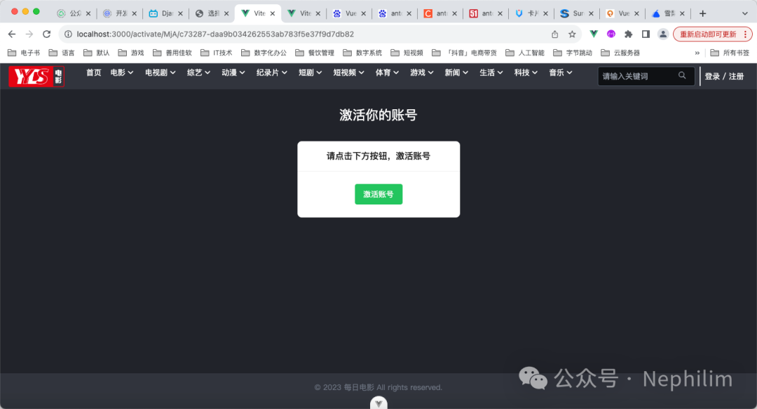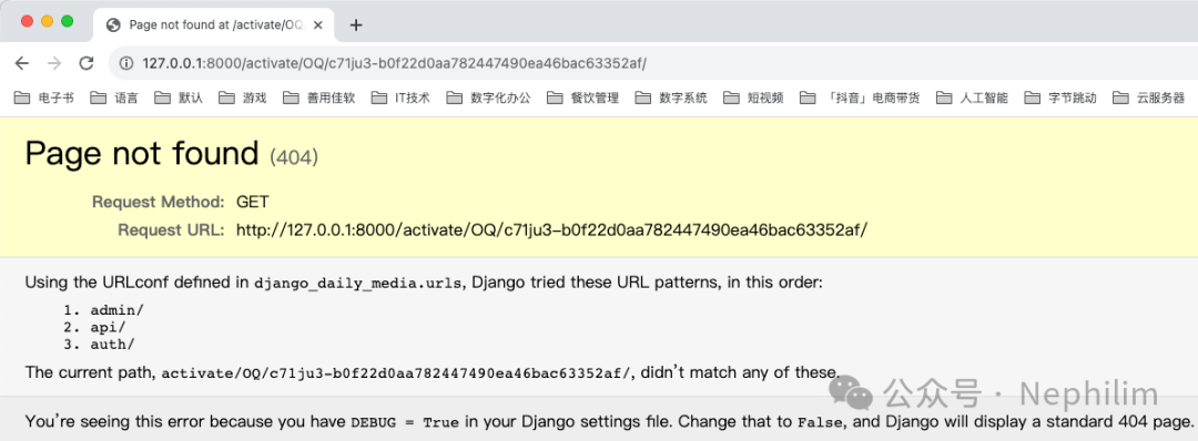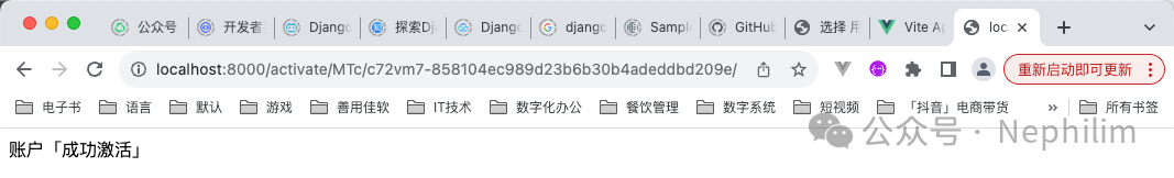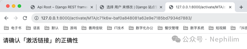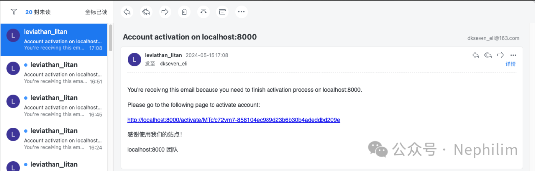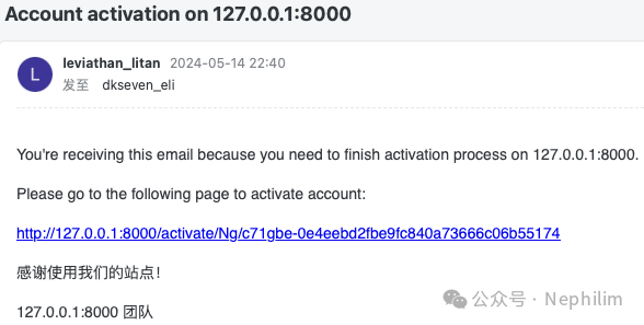 不过需要注意的是,收到的邮件的地址是Django的地址,端口「8000」: