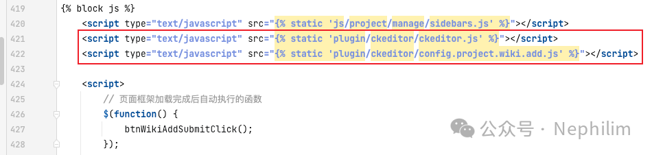 这里,以「wiki_add.html」为例,所有的CKEditor的使用、JS的定义、CSS的配置都会围绕这个页面展开,这样也便于理解在前端页面中,到底是如何使用CKEditor的。