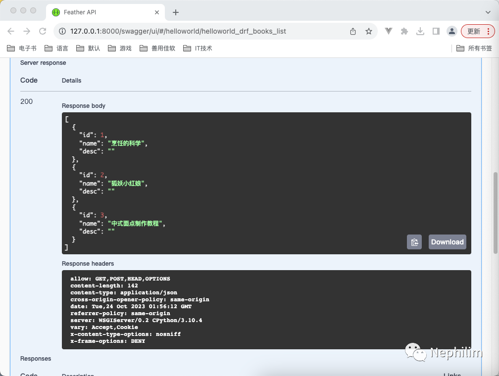 数据模型类配置 DRF(Django Rest Framework)可以参考上一篇文档「Python Django:添加 Rest Framework 支持」,里面有详细的描述与说明。