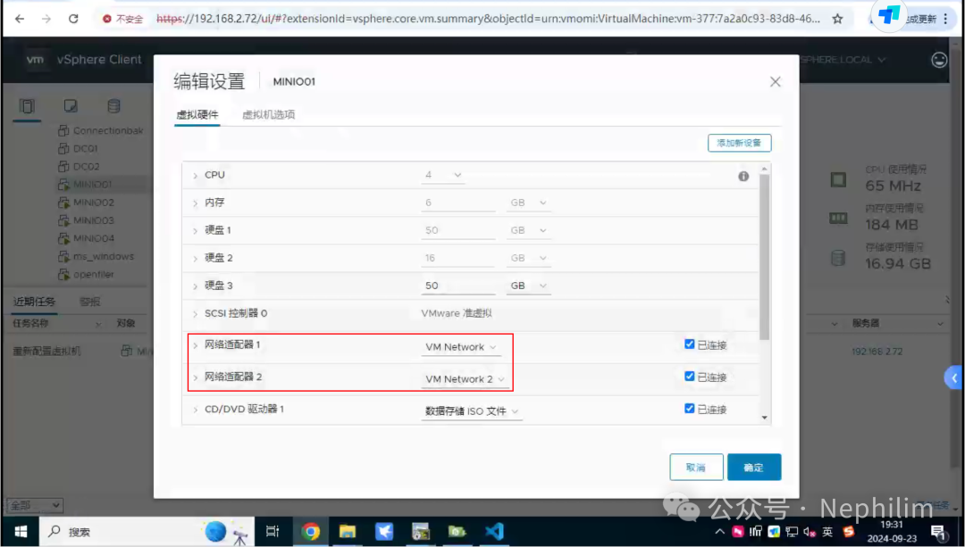 [root@minio1 ~]# cat etc/sysconfig/network-scripts/ifcfg-eth1HWADDR=00:50:56:AC:1C:A5TYPE=EthernetPROXY_METHOD=noneBROWSER_ONLY=noBOOTPROTO=dhcpDEFROUTE=yesIPV4_FAILURE_FATAL=noIPV6INIT=yesIPV6_AUTOCONF=yesIPV6_DEFROUTE=yesIPV6_FAILURE_FATAL=noIPV6_ADDR_GEN_MODE=stable-privacyNAME=eth1DEVICE=eth1UUID=054edbad-4775-3aaa-8e10-576ce261ccd8ONBOOT=yesAUTOCONNECT_PRIORITY=-999[root@minio1 ~]#