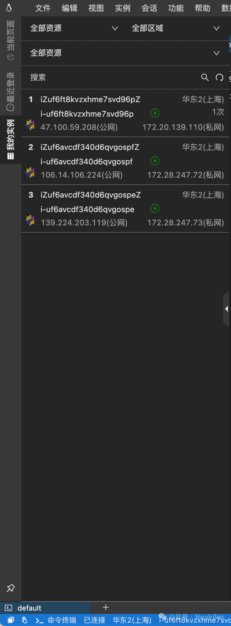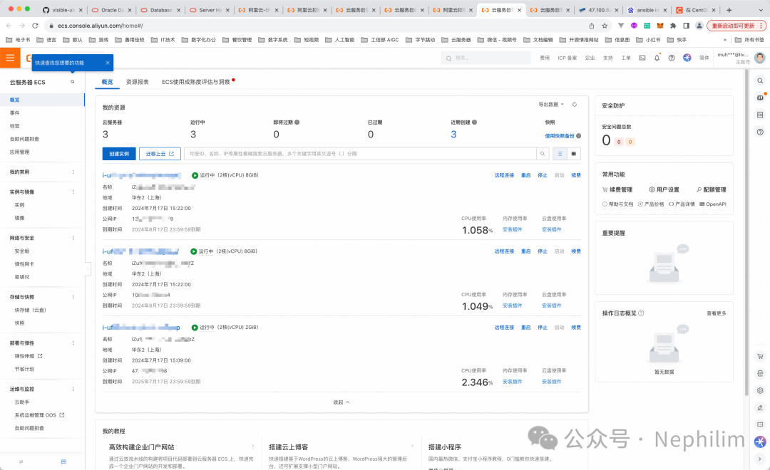然后,点击「Home」中的「ECS」,就可以看到你的账号中的ECS的资源: