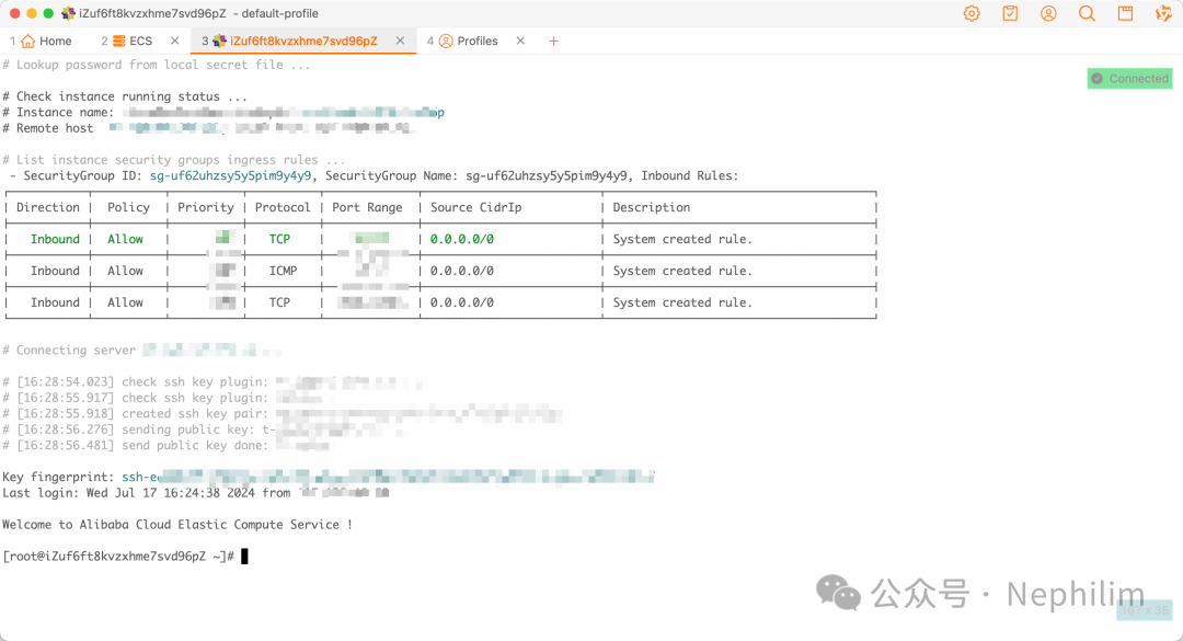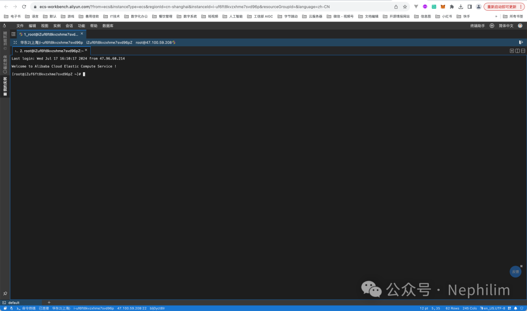 可以看到,已经成功的登录到了ECS的命令行界面中了。