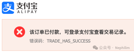 如果接口返回的链接你已经执行了「交易动作」,再次访问的时候会遇到错误: