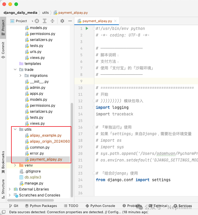 上面大概介绍了下支付宝的沙箱环境,下面在Django项目中使用它。