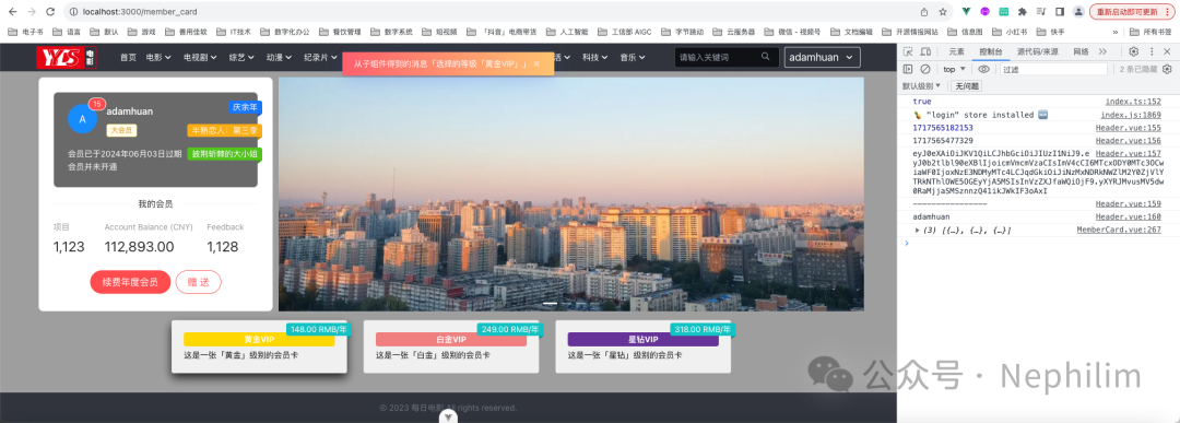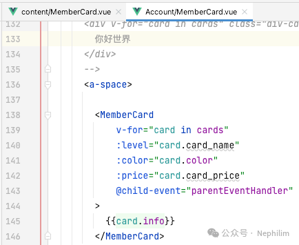 在前端页面的会员卡页面中,我是通过自定义组件完成的三张会员卡的渲染的: