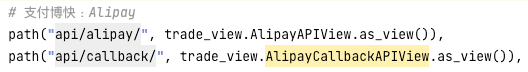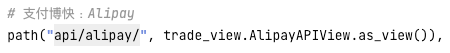 从上面代码可以看到,因为与支付相关,所以新增的路由「/api/alipay」的对应视图设置在了「trade」应用中: