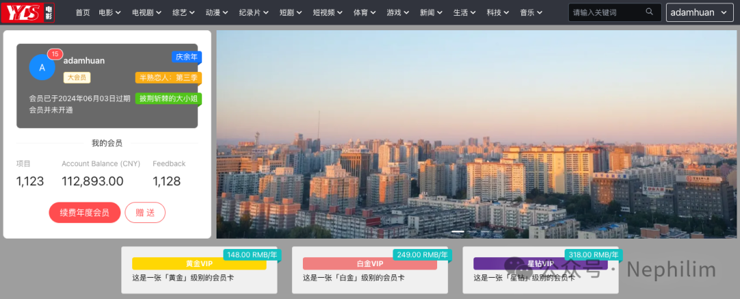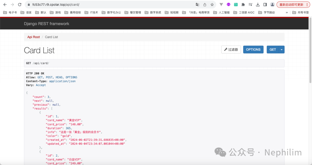 在我当前的Django项目中,支付流程的起点是「会员卡」管理页面: