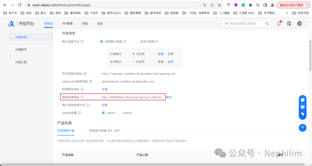 在配置支付宝的回调与通知地址之前,请确认「穿透」地址的有效性。