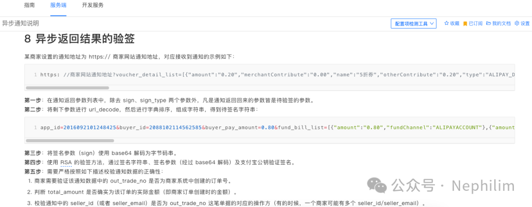 在官方文档中,对异步返回结果的验签,一共有五步: