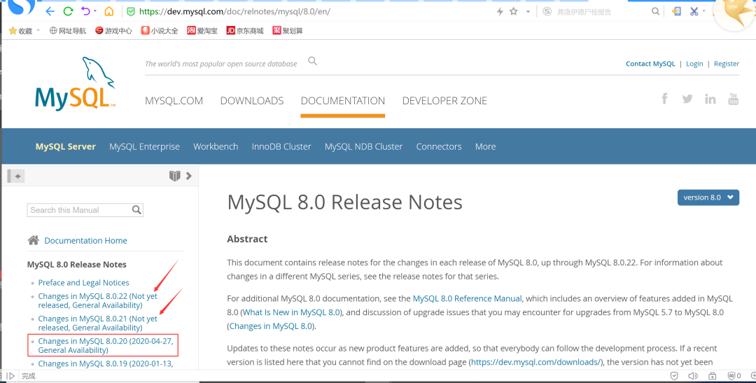 https://dev.mysql.com/doc/relnotes/mysql/8.0/en/