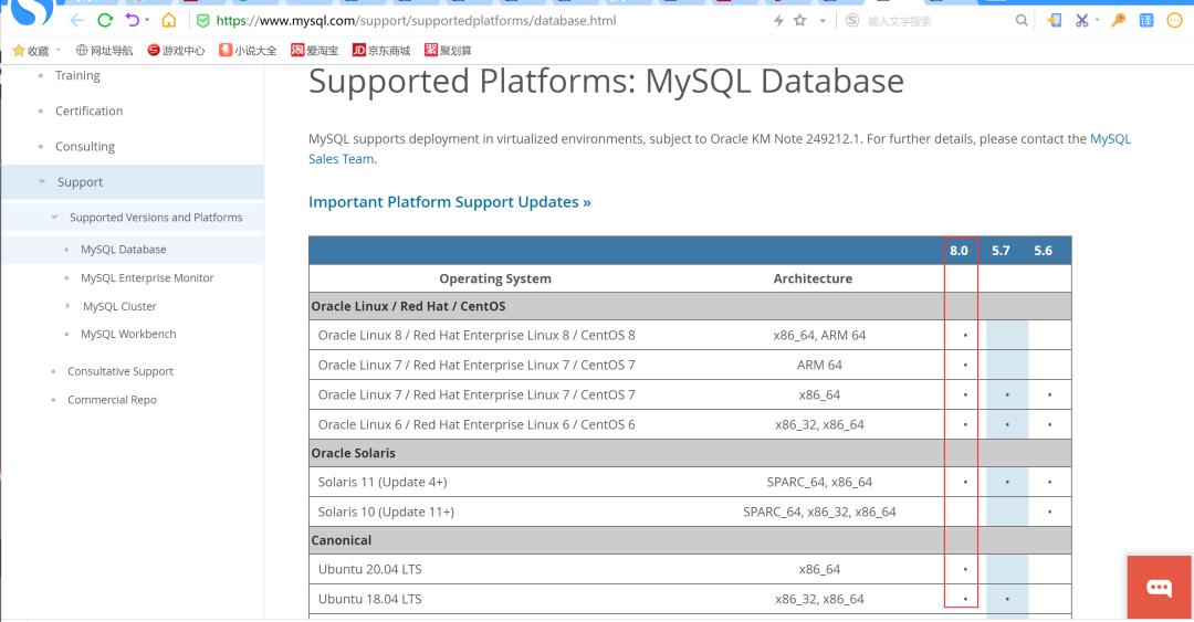 而关于MySQL数据库所支持的操作系统的信息可以通过下面的官方地址获取: