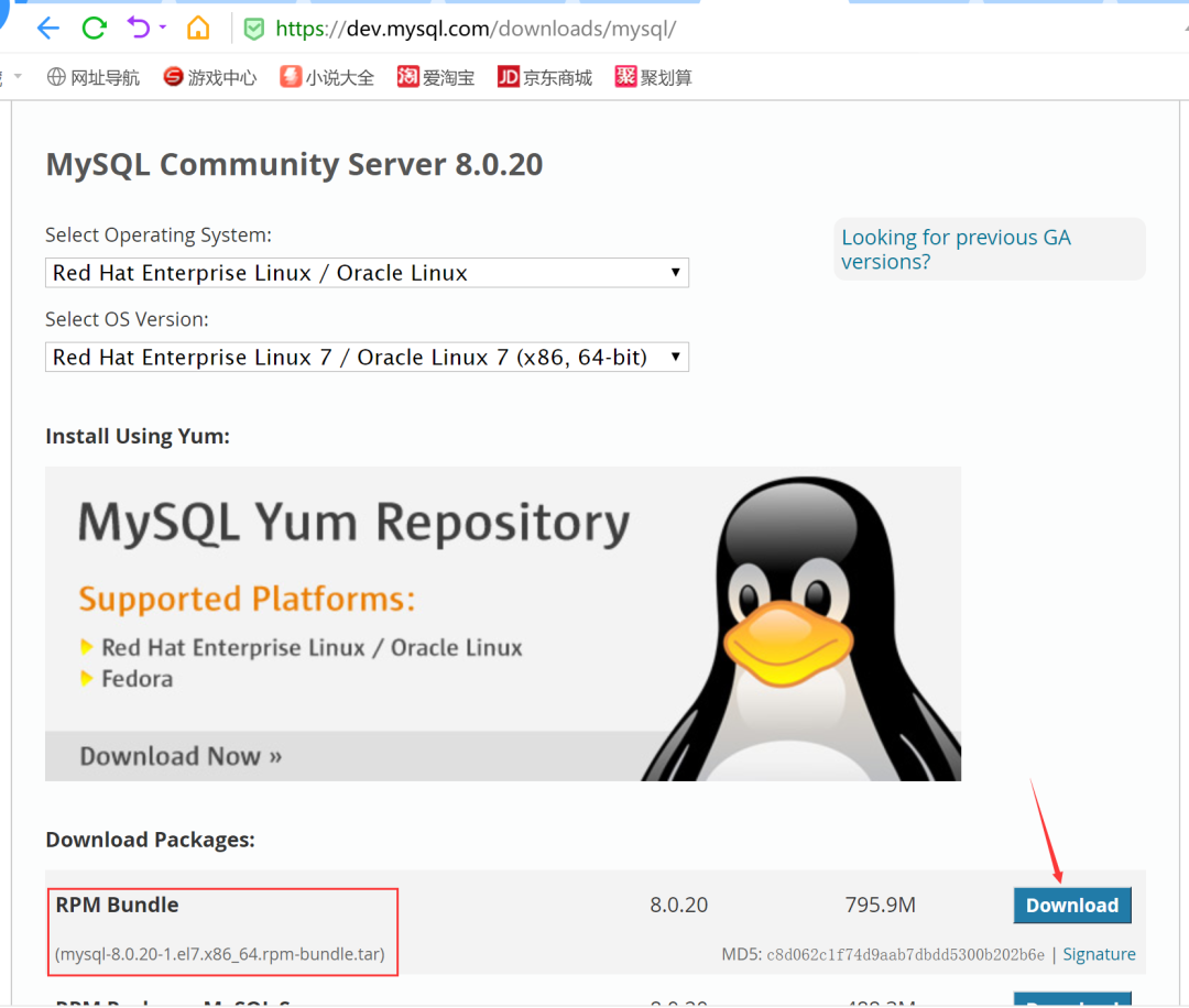 在下载页中,选择你的操作系统【Red Hat Enterprise Linux Oracle Linux】