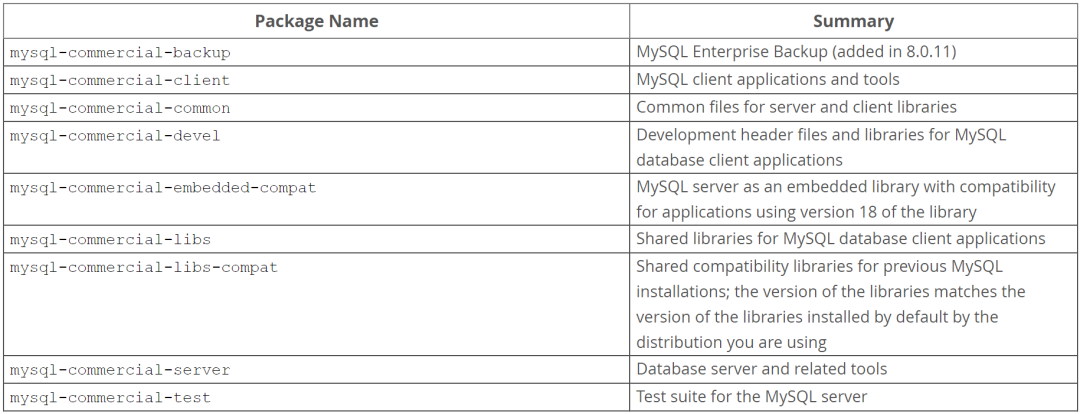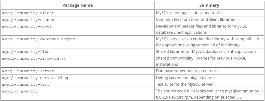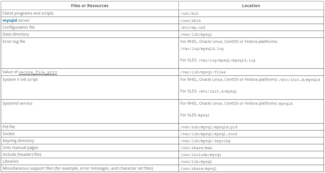 [root@mysql ~]# rpm -qa | grep mysqlmysql-community-common-8.0.20-1.el7.x86_64mysql-community-client-8.0.20-1.el7.x86_64mysql-community-server-8.0.20-1.el7.x86_64mysql-community-libs-compat-8.0.20-1.el7.x86_64mysql-community-libs-8.0.20-1.el7.x86_64[root@mysql ~]#[root@mysql ~]# rpm -ql mysql-community-server/etc/logrotate.d/mysql/etc/my.cnf/etc/my.cnf.d/usr/bin/ibd2sdi/usr/bin/innochecksum/usr/bin/lz4_decompress/usr/bin/my_print_defaults/usr/bin/myisam_ftdump/usr/bin/myisamchk/usr/bin/myisamlog/usr/bin/myisampack/usr/bin/mysql_secure_installation/usr/bin/mysql_ssl_rsa_setup/usr/bin/mysql_tzinfo_to_sql/usr/bin/mysql_upgrade/usr/bin/mysqld_pre_systemd/usr/bin/mysqldumpslow/usr/bin/perror/usr/bin/zlib_decompress/usr/lib/systemd/system/mysqld.service/usr/lib/systemd/system/mysqld@.service/usr/lib/tmpfiles.d/mysql.conf/usr/lib64/mysql/mecab/usr/lib64/mysql/mecab/dic/usr/lib64/mysql/mecab/dic/ipadic_euc-jp/usr/lib64/mysql/mecab/dic/ipadic_euc-jp/char.bin/usr/lib64/mysql/mecab/dic/ipadic_euc-jp/dicrc/usr/lib64/mysql/mecab/dic/ipadic_euc-jp/left-id.def/usr/lib64/mysql/mecab/dic/ipadic_euc-jp/matrix.bin/usr/lib64/mysql/mecab/dic/ipadic_euc-jp/pos-id.def/usr/lib64/mysql/mecab/dic/ipadic_euc-jp/rewrite.def/usr/lib64/mysql/mecab/dic/ipadic_euc-jp/right-id.def/usr/lib64/mysql/mecab/dic/ipadic_euc-jp/sys.dic/usr/lib64/mysql/mecab/dic/ipadic_euc-jp/unk.dic/usr/lib64/mysql/mecab/dic/ipadic_sjis/usr/lib64/mysql/mecab/dic/ipadic_sjis/char.bin/usr/lib64/mysql/mecab/dic/ipadic_sjis/dicrc/usr/lib64/mysql/mecab/dic/ipadic_sjis/left-id.def/usr/lib64/mysql/mecab/dic/ipadic_sjis/matrix.bin/usr/lib64/mysql/mecab/dic/ipadic_sjis/pos-id.def/usr/lib64/mysql/mecab/dic/ipadic_sjis/rewrite.def/usr/lib64/mysql/mecab/dic/ipadic_sjis/right-id.def/usr/lib64/mysql/mecab/dic/ipadic_sjis/sys.dic/usr/lib64/mysql/mecab/dic/ipadic_sjis/unk.dic/usr/lib64/mysql/mecab/dic/ipadic_utf-8/usr/lib64/mysql/mecab/dic/ipadic_utf-8/char.bin/usr/lib64/mysql/mecab/dic/ipadic_utf-8/dicrc/usr/lib64/mysql/mecab/dic/ipadic_utf-8/left-id.def/usr/lib64/mysql/mecab/dic/ipadic_utf-8/matrix.bin/usr/lib64/mysql/mecab/dic/ipadic_utf-8/pos-id.def/usr/lib64/mysql/mecab/dic/ipadic_utf-8/rewrite.def/usr/lib64/mysql/mecab/dic/ipadic_utf-8/right-id.def/usr/lib64/mysql/mecab/dic/ipadic_utf-8/sys.dic/usr/lib64/mysql/mecab/dic/ipadic_utf-8/unk.dic/usr/lib64/mysql/mecab/etc/usr/lib64/mysql/mecab/etc/mecabrc/usr/lib64/mysql/plugin/usr/lib64/mysql/plugin/adt_null.so/usr/lib64/mysql/plugin/auth_socket.so/usr/lib64/mysql/plugin/authentication_ldap_sasl_client.so/usr/lib64/mysql/plugin/component_audit_api_message_emit.so/usr/lib64/mysql/plugin/component_log_filter_dragnet.so/usr/lib64/mysql/plugin/component_log_sink_json.so/usr/lib64/mysql/plugin/component_log_sink_syseventlog.so/usr/lib64/mysql/plugin/component_mysqlbackup.so/usr/lib64/mysql/plugin/component_validate_password.so/usr/lib64/mysql/plugin/connection_control.so/usr/lib64/mysql/plugin/ddl_rewriter.so/usr/lib64/mysql/plugin/debug/usr/lib64/mysql/plugin/debug/adt_null.so/usr/lib64/mysql/plugin/debug/auth_socket.so/usr/lib64/mysql/plugin/debug/authentication_ldap_sasl_client.so/usr/lib64/mysql/plugin/debug/component_audit_api_message_emit.so/usr/lib64/mysql/plugin/debug/component_log_filter_dragnet.so/usr/lib64/mysql/plugin/debug/component_log_sink_json.so/usr/lib64/mysql/plugin/debug/component_log_sink_syseventlog.so/usr/lib64/mysql/plugin/debug/component_mysqlbackup.so/usr/lib64/mysql/plugin/debug/component_validate_password.so/usr/lib64/mysql/plugin/debug/connection_control.so/usr/lib64/mysql/plugin/debug/ddl_rewriter.so/usr/lib64/mysql/plugin/debug/group_replication.so/usr/lib64/mysql/plugin/debug/ha_example.so/usr/lib64/mysql/plugin/debug/ha_mock.so/usr/lib64/mysql/plugin/debug/innodb_engine.so/usr/lib64/mysql/plugin/debug/keyring_file.so/usr/lib64/mysql/plugin/debug/keyring_udf.so/usr/lib64/mysql/plugin/debug/libmemcached.so/usr/lib64/mysql/plugin/debug/libpluginmecab.so/usr/lib64/mysql/plugin/debug/locking_service.so/usr/lib64/mysql/plugin/debug/mypluglib.so/usr/lib64/mysql/plugin/debug/mysql_clone.so/usr/lib64/mysql/plugin/debug/mysql_no_login.so/usr/lib64/mysql/plugin/debug/rewrite_example.so/usr/lib64/mysql/plugin/debug/rewriter.so/usr/lib64/mysql/plugin/debug/semisync_master.so/usr/lib64/mysql/plugin/debug/semisync_slave.so/usr/lib64/mysql/plugin/debug/validate_password.so/usr/lib64/mysql/plugin/debug/version_token.so/usr/lib64/mysql/plugin/group_replication.so/usr/lib64/mysql/plugin/ha_example.so/usr/lib64/mysql/plugin/ha_mock.so/usr/lib64/mysql/plugin/innodb_engine.so/usr/lib64/mysql/plugin/keyring_file.so/usr/lib64/mysql/plugin/keyring_udf.so/usr/lib64/mysql/plugin/libmemcached.so/usr/lib64/mysql/plugin/libpluginmecab.so/usr/lib64/mysql/plugin/locking_service.so/usr/lib64/mysql/plugin/mypluglib.so/usr/lib64/mysql/plugin/mysql_clone.so/usr/lib64/mysql/plugin/mysql_no_login.so/usr/lib64/mysql/plugin/rewrite_example.so/usr/lib64/mysql/plugin/rewriter.so/usr/lib64/mysql/plugin/semisync_master.so/usr/lib64/mysql/plugin/semisync_slave.so/usr/lib64/mysql/plugin/validate_password.so/usr/lib64/mysql/plugin/version_token.so/usr/lib64/mysql/private/usr/lib64/mysql/private/libprotobuf-lite.so.3.6.1/usr/lib64/mysql/private/libprotobuf.so.3.6.1/usr/sbin/mysqld/usr/sbin/mysqld-debug/usr/share/doc/mysql-community-server-8.0.20/usr/share/doc/mysql-community-server-8.0.20/INFO_BIN/usr/share/doc/mysql-community-server-8.0.20/INFO_SRC/usr/share/doc/mysql-community-server-8.0.20/LICENSE/usr/share/doc/mysql-community-server-8.0.20/README/usr/share/man/man1/ibd2sdi.1.gz/usr/share/man/man1/innochecksum.1.gz/usr/share/man/man1/lz4_decompress.1.gz/usr/share/man/man1/my_print_defaults.1.gz/usr/share/man/man1/myisam_ftdump.1.gz/usr/share/man/man1/myisamchk.1.gz/usr/share/man/man1/myisamlog.1.gz/usr/share/man/man1/myisampack.1.gz/usr/share/man/man1/mysql.server.1.gz/usr/share/man/man1/mysql_secure_installation.1.gz/usr/share/man/man1/mysql_ssl_rsa_setup.1.gz/usr/share/man/man1/mysql_tzinfo_to_sql.1.gz/usr/share/man/man1/my