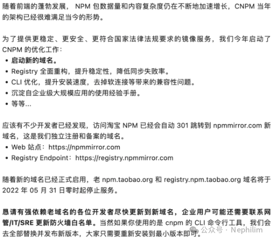 发生上面问题的原因是「registry.npm.taobao.org」已经停止服务了: