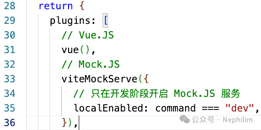在「vite.config.js」配置文件中启用「Mock」