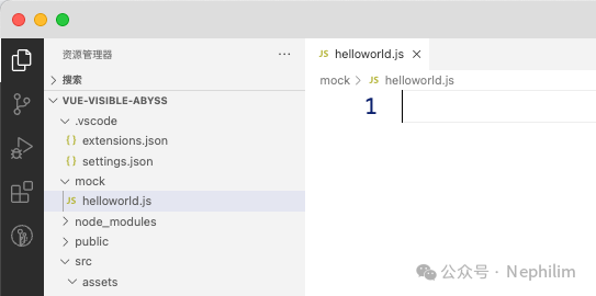 在「mock」中新增一个「模拟数据文件」:「helloworld.js」