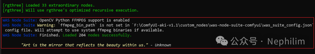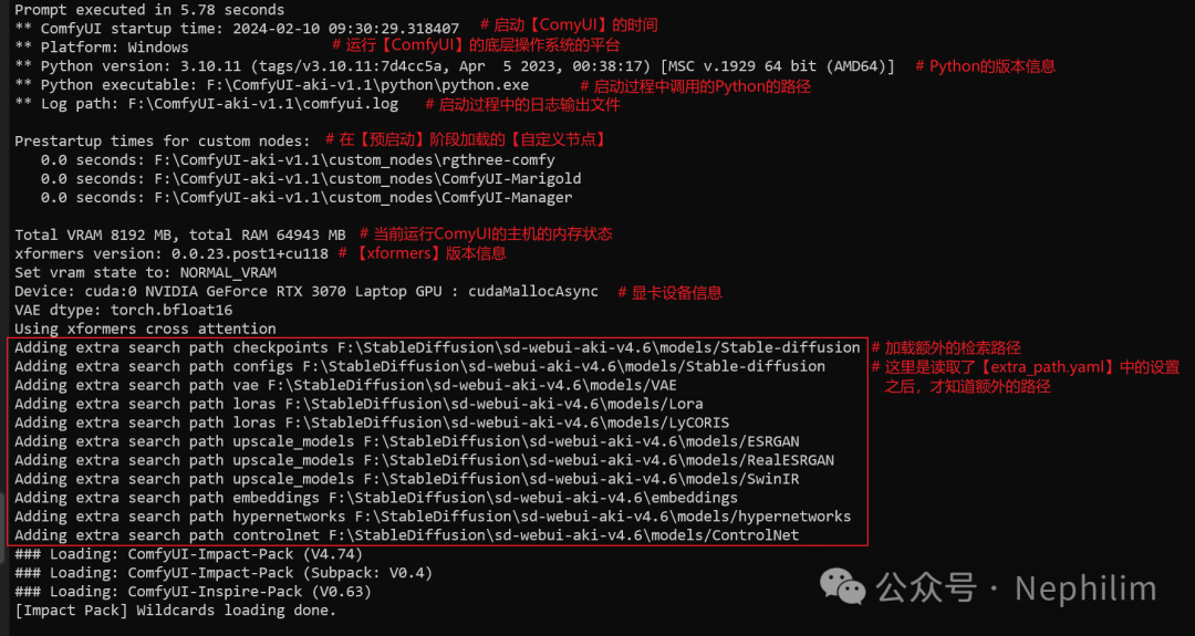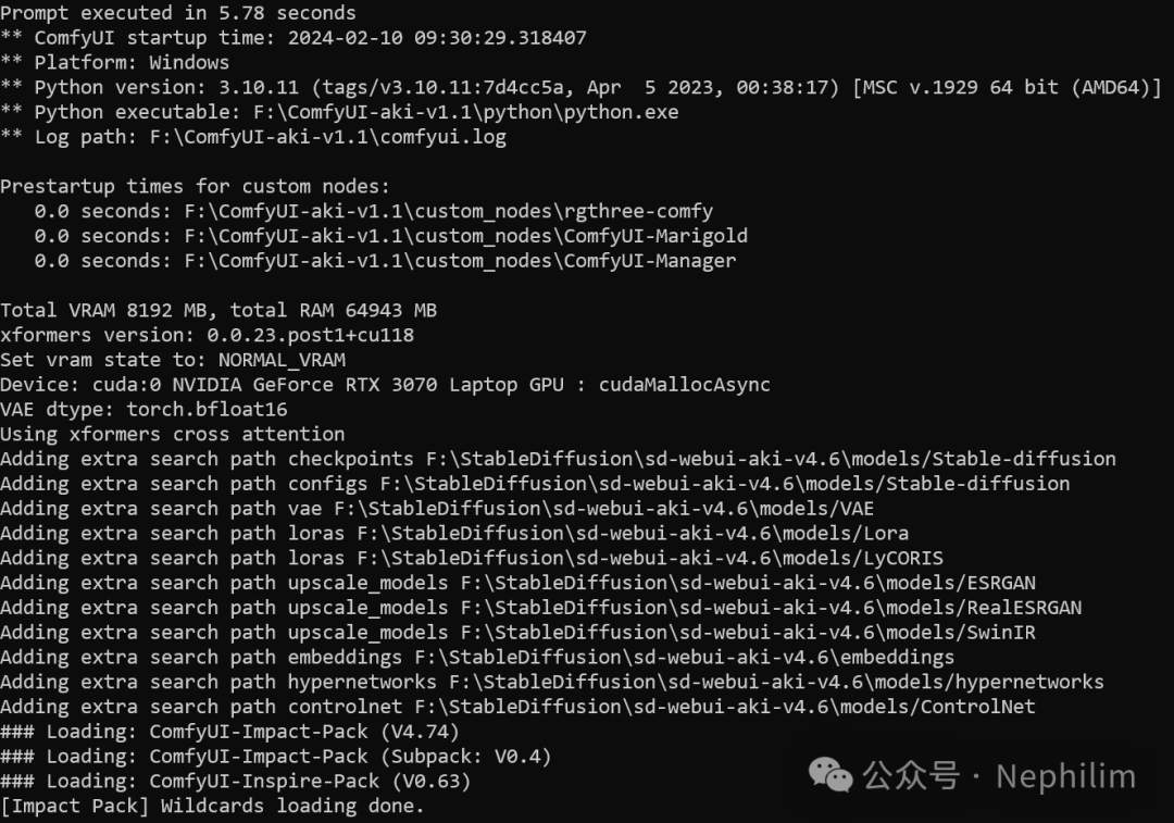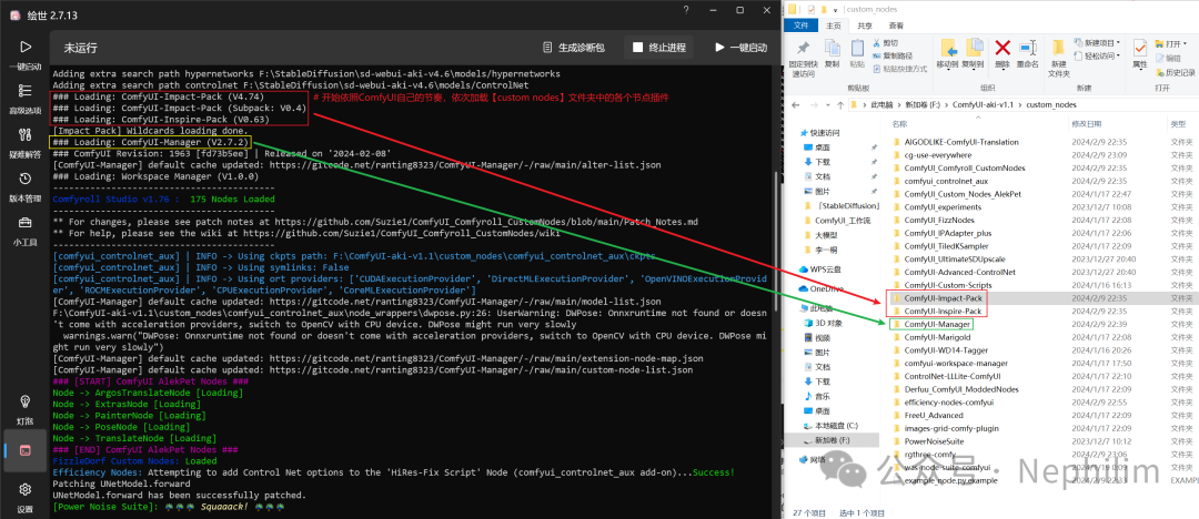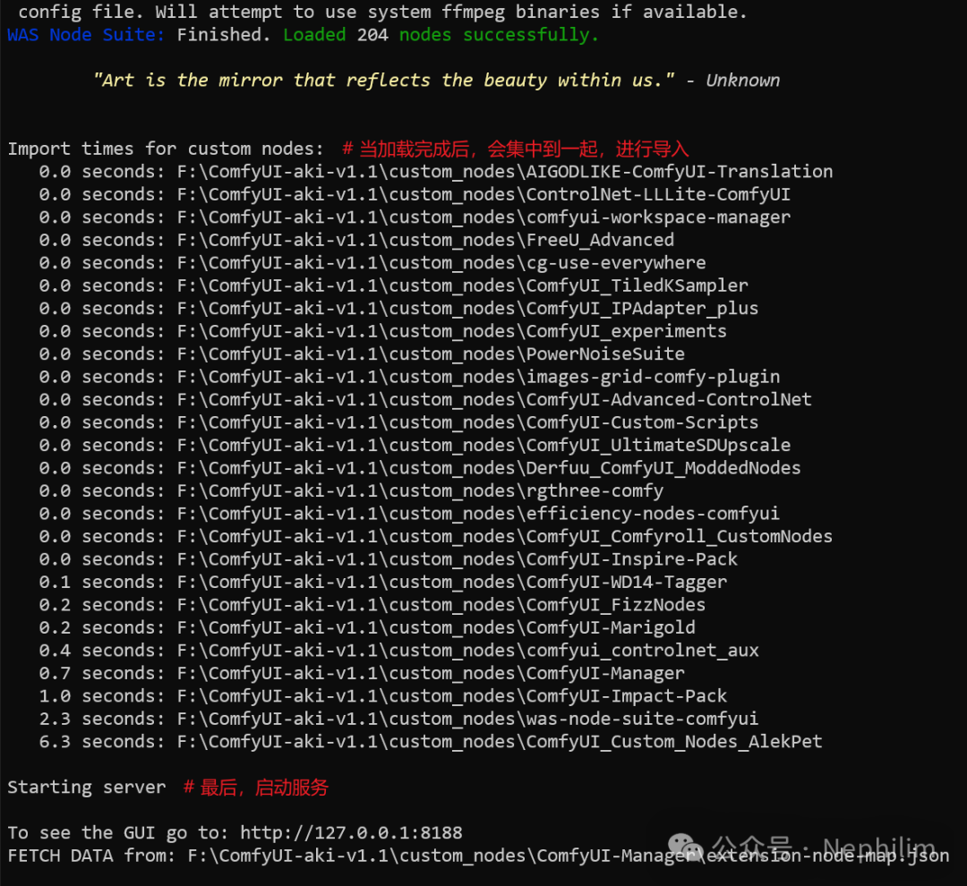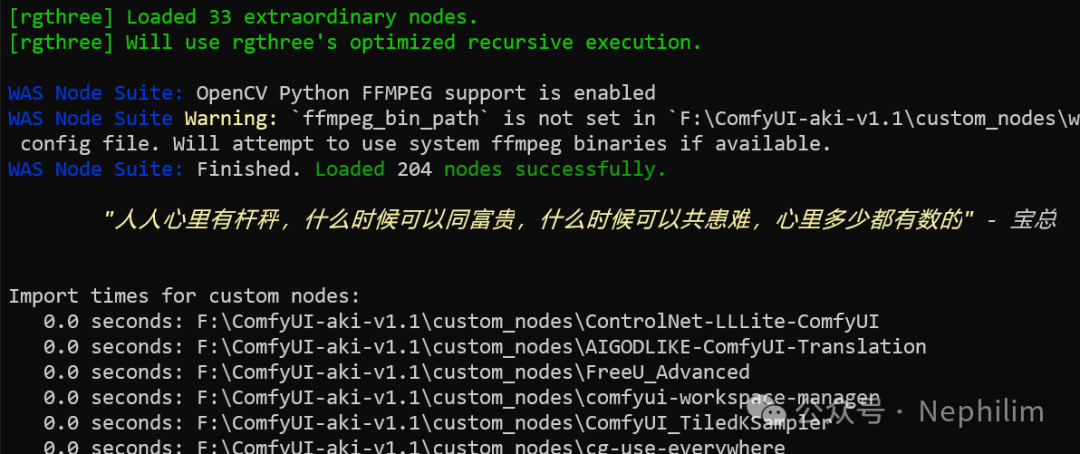 可以看到,每次加载一个全新的【custom nodes】,输出信息会以【### Loading: xxxxx】来标识
