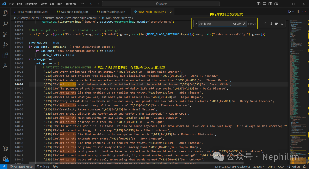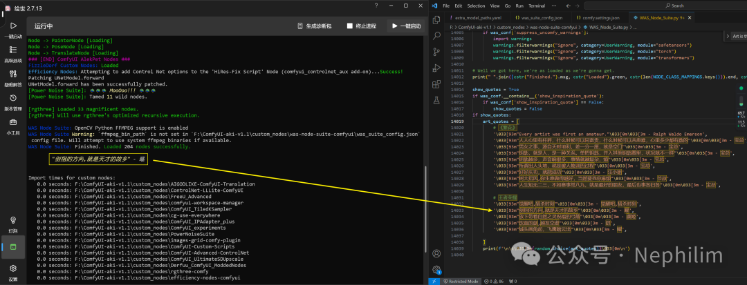 因此,接下来,分析【秋叶】启动器中的输出,对比【custom nodes】目录,一定可以找到输出【每日一句】信息的那个插件。
