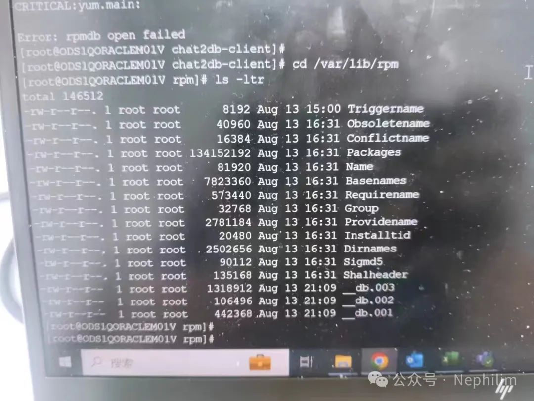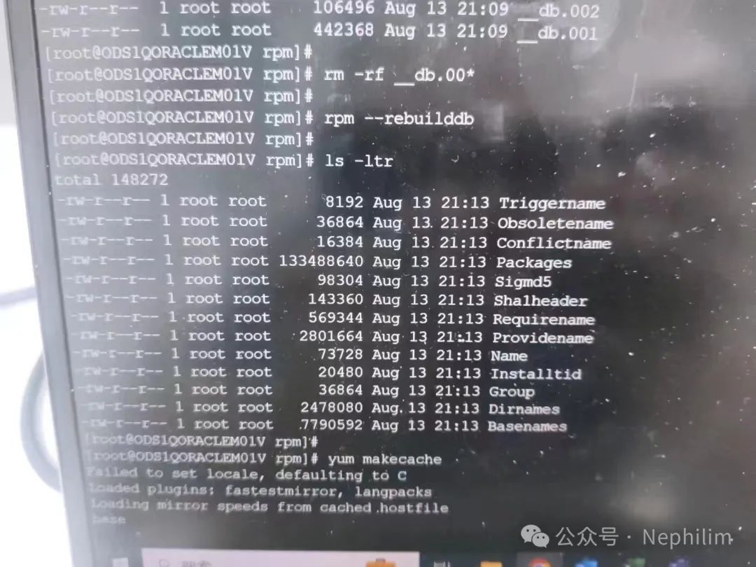 然后,就可以通过「rpm」命令去重建「db」了: