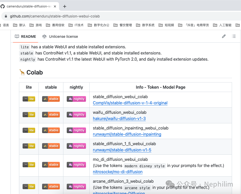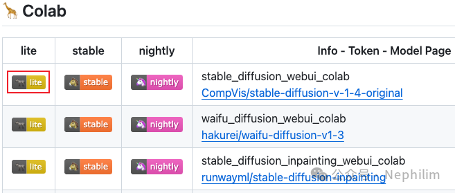 我们可以选择一个最基础的模型版本进行部署:https://colab.research.google.com/github/camenduru/stable-diffusion-webui-colab/blob/main/lite/stable_diffusion_webui_colab.ipynb