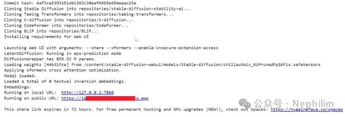 这里,便是你在线Stable Diffusion的地址了;访问它,你将看到一个在线的WebUI,接下来的操作就和一般的操作没有什么区别;