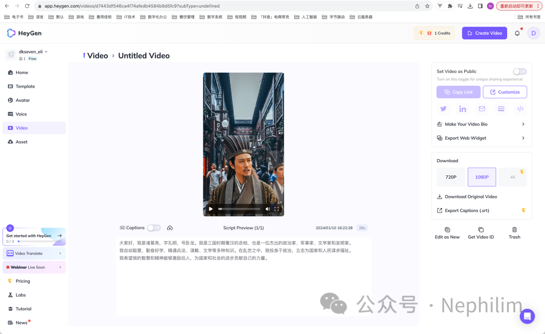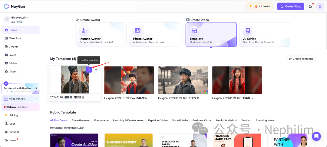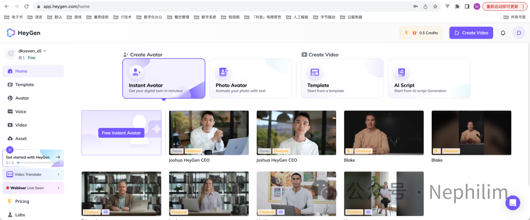 下面,通过HeyGen创建一个你自己定制的虚拟人;