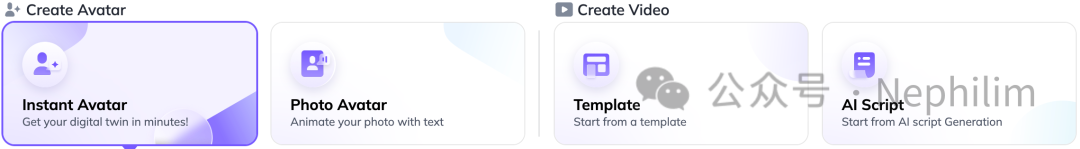 可以从上图中看到,在HeyGen中,创建数字人的起点有两步可选: