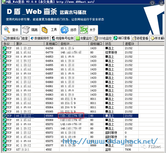 (主要看是否外联ip,是否和内网可疑沦陷或攻击ip有联系,有就查相关进程,D盾会自动更新也可能有外联是D盾的ip,这微步查就知道)