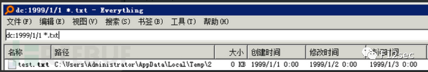 dc:后跟日期,检查创建时间为1999年01月01日,后缀为.txt的文件。