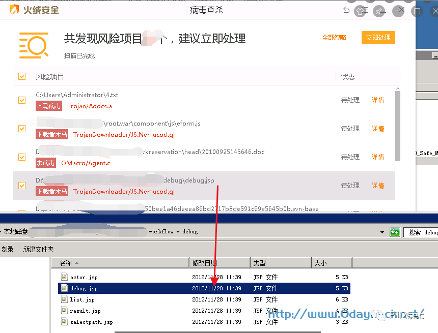2,木马查杀异常,5个有问题文件但非近期创建且排查出可能是误报。