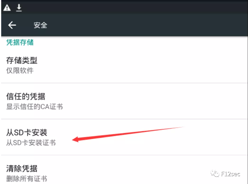 下载完成后,回到设置—>安全—>更多安全设置—>加密和凭据—>从存储设备安装证书,找到下载的证书(ps:证书的命名要以.crt的格式作为后缀名),如下图: