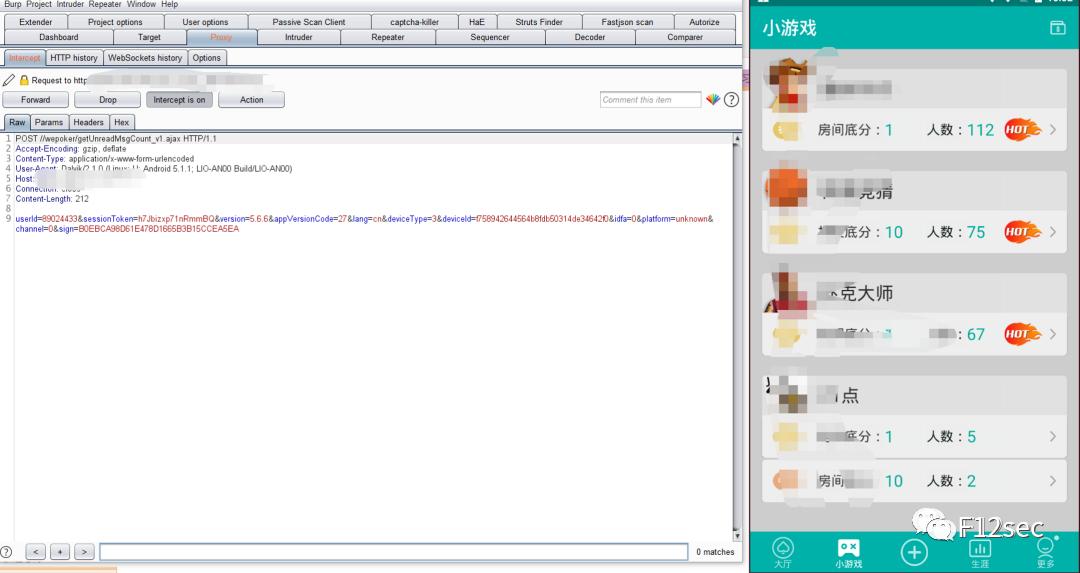 6、burp抓包成功,如下图:
