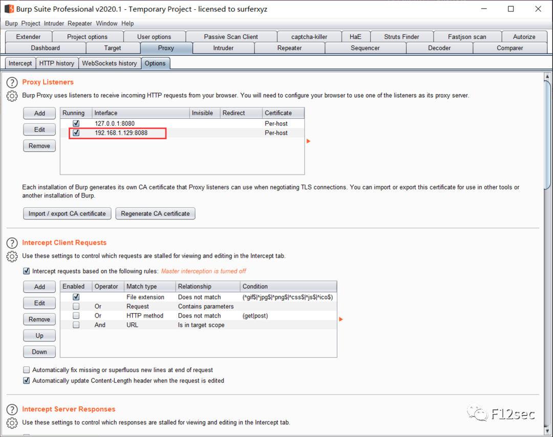 2、安装burp证书,burp设置好代理。