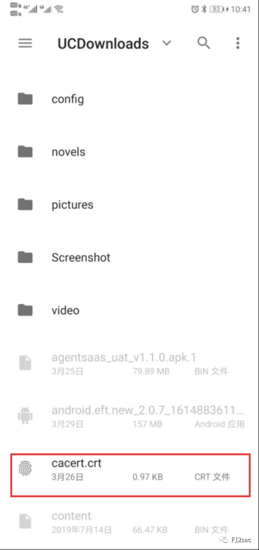 下载完成后把证书改名:crt格式(ps:模拟器或手机支持的格式)。