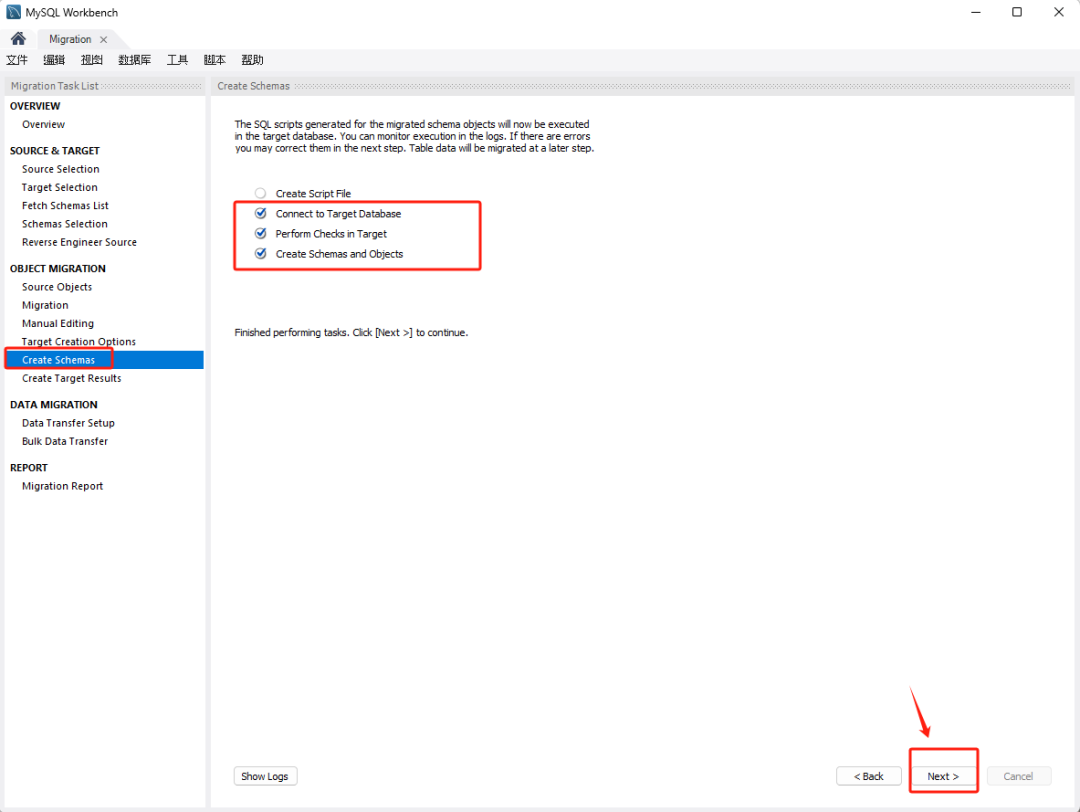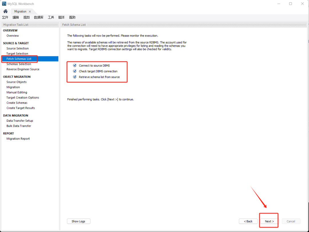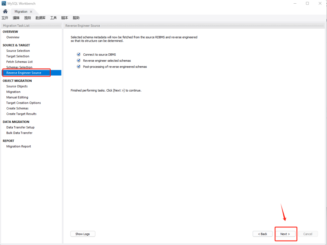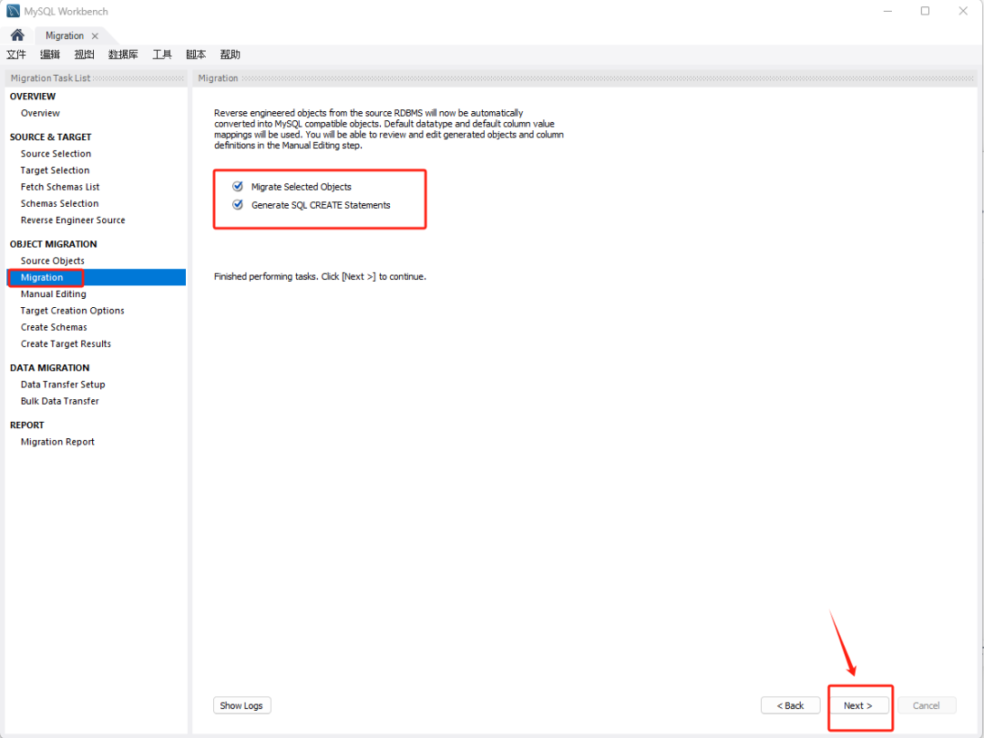 双击打开MySQL workbench,点击数据迁移功能,再点击开始迁移按钮