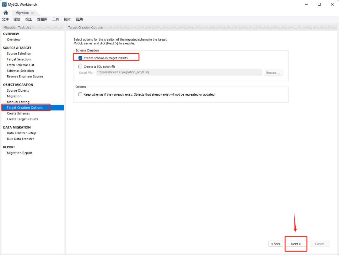 Create a batch file to copy the data at another time:数据也可以转储到一个稍后可以执行的文件中,或者用作备份。此脚本使用MySQL连接来传输数据。