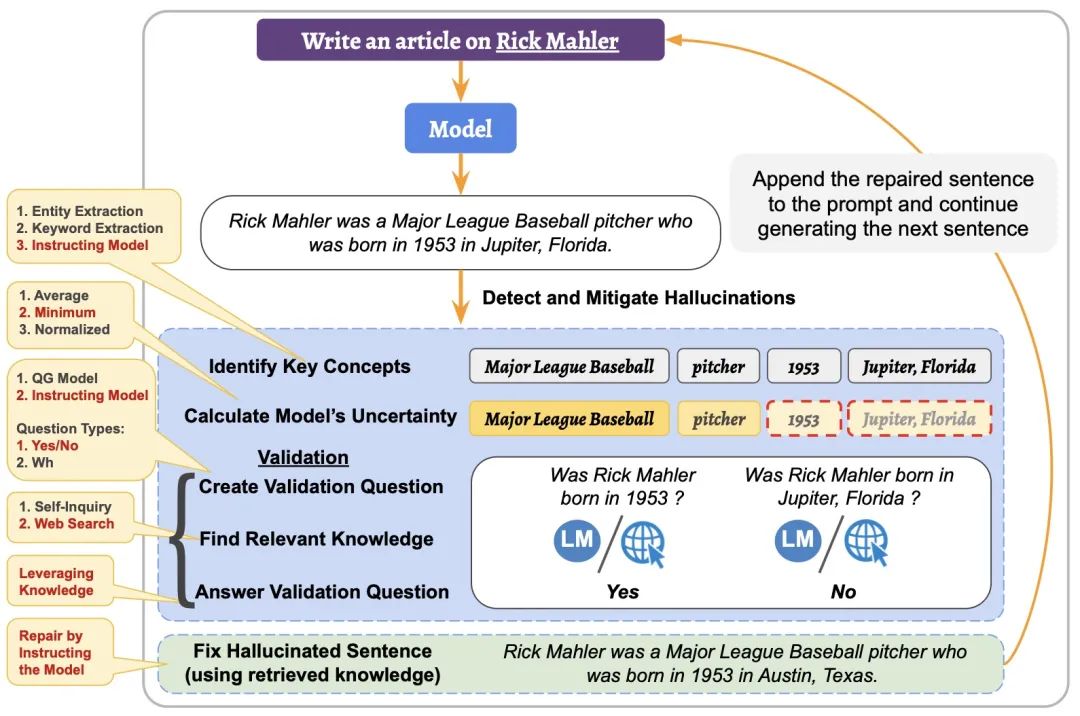 论文名:A Stitch in Time Saves Nine: Detecting and Mitigating Hallucinations of LLMs by Validating Low-Confidence Generation (2023.7) [8]
