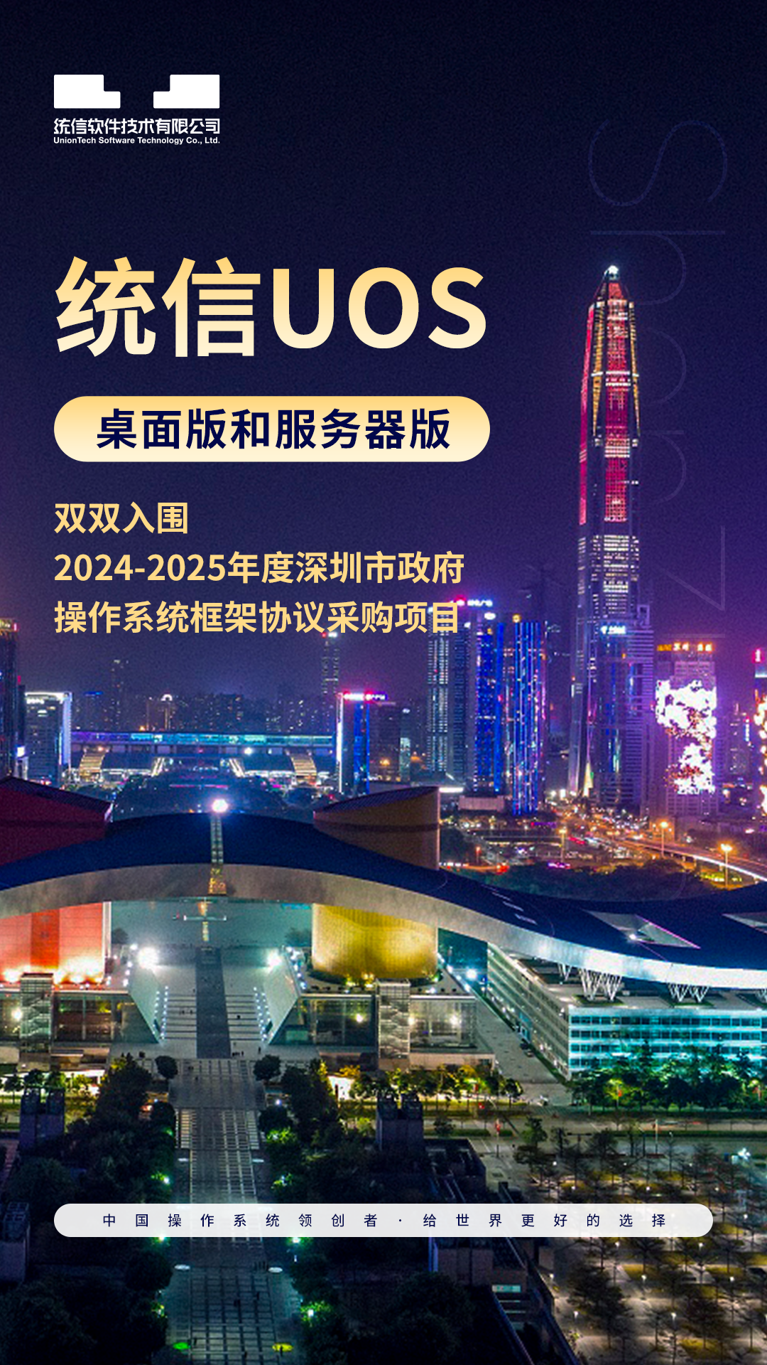 近日,凭借卓越的技术实力与服务质量,统信UOS桌面版和服务器版双双入围“2024-2025年度深圳市政府操作系统框架协议采购项目”。