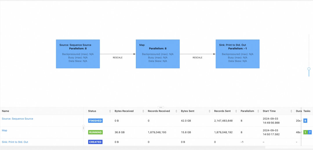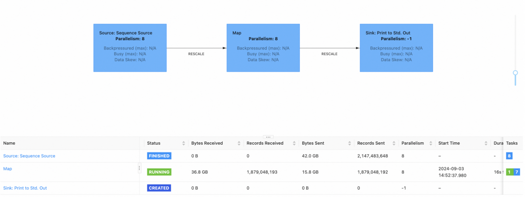点进作业详情页后,可以观察到作业已经恢复到 JM failover 前到进展了。