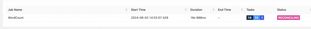 随后,高可用服务将会自动拉起新的 JM 进程,作业将进入 RECONCILING 状态,表示作业进入了恢复运行进展的阶段。