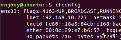 打开虚拟机用`ifconfig`获得虚拟机的网卡名称