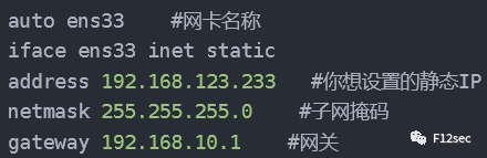 把刚刚修改的ens33网卡修改为: