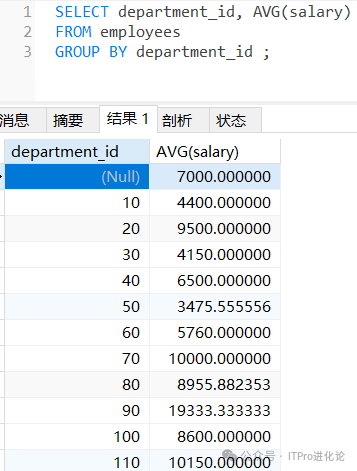 在SELECT列表中所有未包含在组函数中的列都应该包含在 GROUP BY子句中。